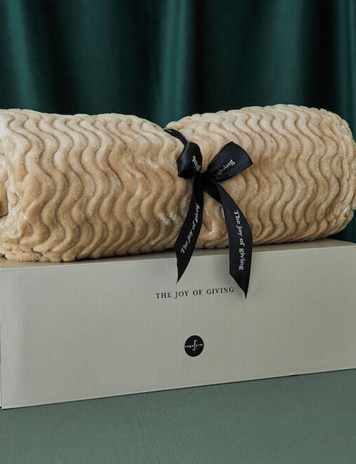Agnes är som vi ser det, den perfekta fleecepläden att använda både inne och ute. Mjuk, varm och lätt att ta med sig vart man än går. En lyxig pläd som skapar leenden hos både givaren och mottagaren. Inslagen med ett rosettband i en snygg presentkartong.