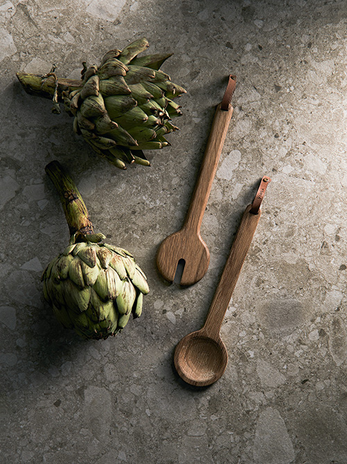 Exklusiva serveringsbestick i ek med en fin detalj av PU. Tillverkad av FSC®-certifierat ekträ som tagits fram genom ett ansvarsfullt skogsbruk som tagit hänsyn till människor och miljö.