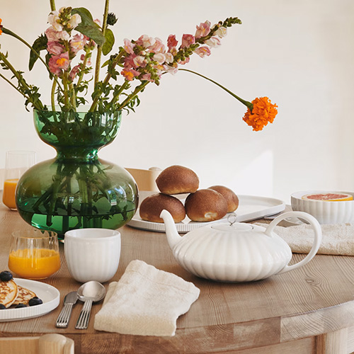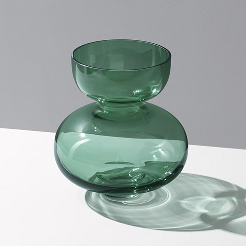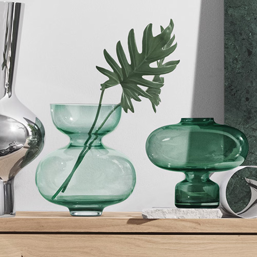 Färgen på glasvasen är unik för Georg Jensen och har utvecklats i nära samarbete mellan Georg Jensen Livings designteam och Glafo glasforskningsinstitut.