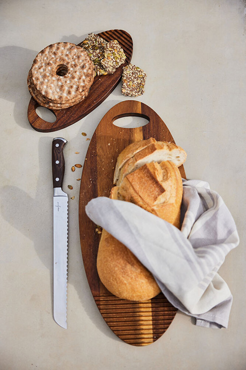 Ante skärbräda har en oval form, med vackra snidade ränder i ena änden, och är tillverkad av mörkt robust akaciaträ. Formen gör Ante till något alldeles särskilt, snygg att ha framme när den inte används och extra praktisk när den placeras på bordet. Ante skärbräda kommer i två olika storlekar, den tillverkas för hand och har unika variationer i form och färg som bara handgjorda produkter kan få. Bra att veta är att skärbrädor i trä har längre hållbarhet och är dessutom mer skonsamma mot knivarna.