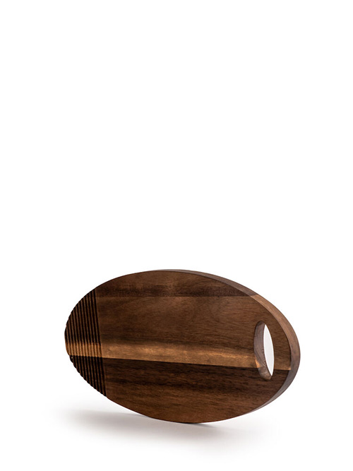 Ante skärbräda har en oval form, med vackra snidade ränder i ena änden, och är tillverkad av mörkt robust akaciaträ. Formen gör Ante till något alldeles särskilt, snygg att ha framme när den inte används och extra praktisk när den placeras på bordet. Ante skärbräda kommer i två olika storlekar, den tillverkas för hand och har unika variationer i form och färg som bara handgjorda produkter kan få. Bra att veta är att skärbrädor i trä har längre hållbarhet och är dessutom mer skonsamma mot knivarna.
