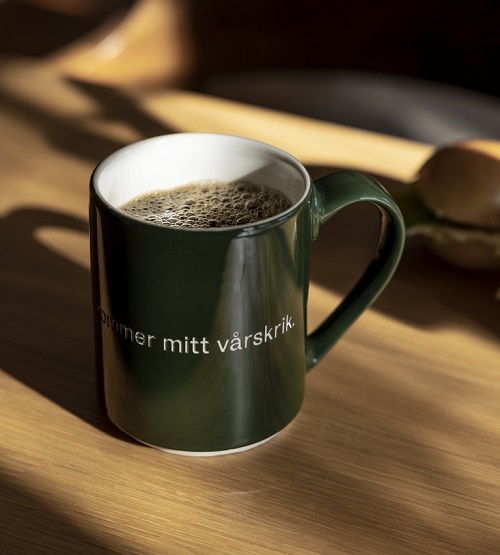 Mugg med citatet "Håll för örona, för nu kommer mitt vårskrik."