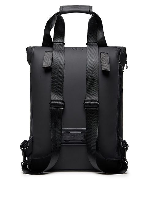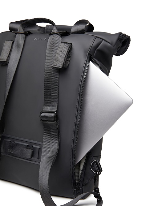 En snygg, modern väska i spänstigt veganskt/Nubuck PU-läder. Den här mångsidiga designen kan bäras som antingen en ryggsäck eller en bärväska - pendla med väskan bekvämt på ryggen och bär den sedan helt enkelt över armen om du ska gå ut på lunch. Den snygga, vadderade datorfickan är den perfekta platsen för att förvara dina enheter. Du kan också fästa väskan på cykelramen. Den perfekta kombinationen av praktiska egenskaper och stil!