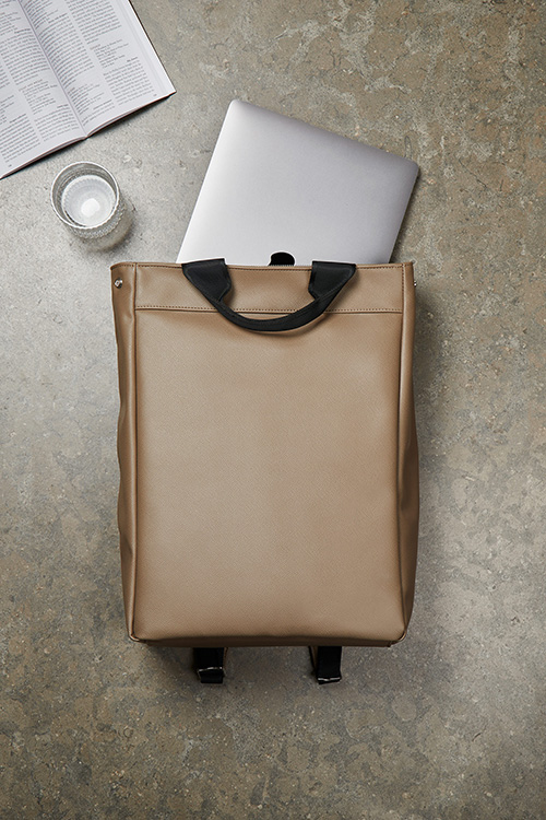 Denna diskreta och exklusiva ryggsäck passar perfekt både för kontoret och när du är på språng. Den har en elegant design och ett exklusivt utseende. Utrustad med ett vadderat datorfack för extra skydd. Kan bäras som en tote eller som en ryggsäck, vilket gör den mångsidig och bekväm för alla tillfällen. Utsidan av ryggsäcken är tillverkad av återvunnet PU-läder och innerfodret är tillverkat av återvunnet material. Tillverkad av 35 % RCS-certifierade (Recycled Claim Standard) återvunna material, vilket säkerställer att alla återvunna material som används upprätthåller en fullt certifierad leveranskedja. Det totala återvunna innehållet baseras på produktens totalvikt och återspeglar löftet att göra våra inköp från hållbara källor. Denna produkt innehåller 35 % RCS certifierad återvunnen PU och polyester.