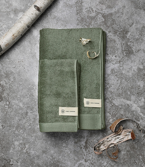 En handduksserie i 68 % bomull och 32 % tencel. Tencel är en naturfiber som tas från certifierad skog. Processen är så energi- och kemikaliesnål som det för närvarande går. Denna blandning ger ett svalt, mjukt och slitstarkt material med en gedigen känsla och just tack vare Tencel-mixen så har den en fantastisk uppsugningsförmåga. Bomullen som används i denna serie är BCI-certifierad, ett initiativ som är till för att hjälpa bomullsodlare att omvandla sitt jordbruk från konventionellt jordbruk till en mer hållbar odling. Framtagna i en jordnära färgskala i flera olika storlekar. Handduken är vävd i 450 gsm.