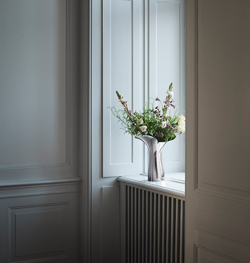 Denna vackra vas i rostfritt stål är både minimalistisk och organisk, och är inspirerad av det där ögonblicket när en blomsterknopp brister och avslöjar sina vackra blad. Stålvasen fångar vårens sköna känsla och är lika vacker tom som full med snittblommor, vilket gör den till ett användbart föremål i ditt hem.