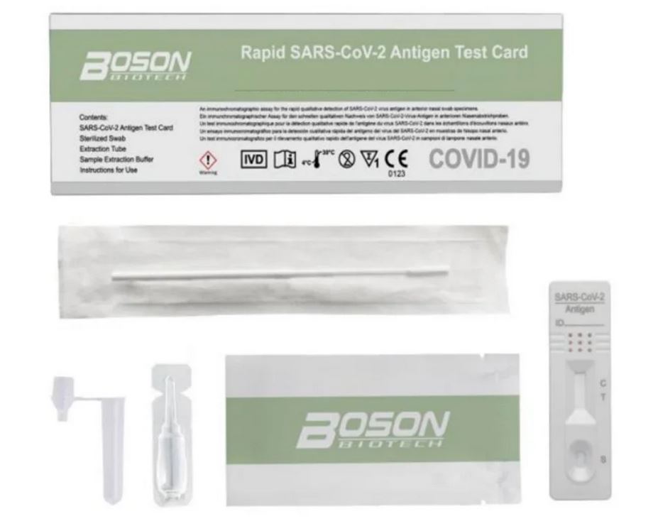 Boson SARS-CoV-2-Antigentest är ett självtest för detektering av pågående Covid-19-infektion. Bosons antigentest är ett in vitro-test som baseras på immunkromatografi. Självtestet görs via toppsning i näsan vid misstänkt Covid-19 och resultatet visas efter 15-20 minuter.
