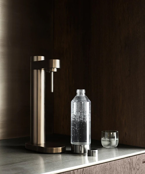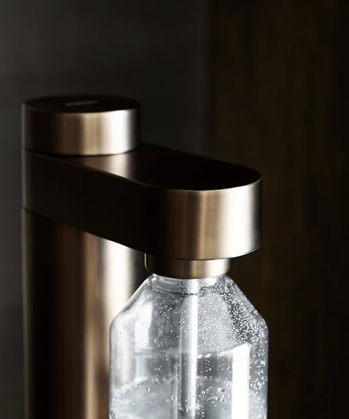 Med Brus kolsyremaskin skonar du miljön från stora mängder onödig plast genom att göra ditt eget mineralvatten eller läsk i återanvändbara flaskor. Designen på kolsyremaskinen är så elegant att man blir glad av att se den stå framme på köksbänken. Designern bakom kolsyremaskinen heter Søren Refsgaard och är känd för sin rena och funktionella design där allt överflödigt har skalats bort. Designen bygger på de cylindriska former som är klassiska för Steltons design. Den cylindriska formen syns först och främst i den otroligt slimmade behållaren till kolsyrepatronen och går igen i kolsyreknappen som intuitivt vrids medurs för att justera mängden kolsyra och vrids tillbaka när flaskan ska tas loss från maskinen. Finns i färgerna brow metallic, black metallic och steel.