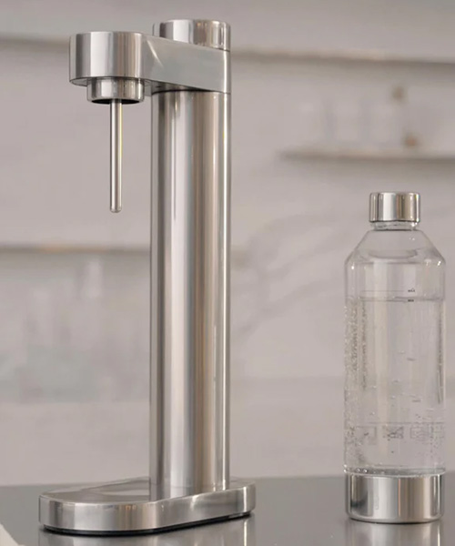 Med Brus kolsyremaskin skonar du miljön från stora mängder onödig plast genom att göra ditt eget mineralvatten eller läsk i återanvändbara flaskor. Designen på kolsyremaskinen är så elegant att man blir glad av att se den stå framme på köksbänken. Designern bakom kolsyremaskinen heter Søren Refsgaard och är känd för sin rena och funktionella design där allt överflödigt har skalats bort. Designen bygger på de cylindriska former som är klassiska för Steltons design. Den cylindriska formen syns först och främst i den otroligt slimmade behållaren till kolsyrepatronen och går igen i kolsyreknappen som intuitivt vrids medurs för att justera mängden kolsyra och vrids tillbaka när flaskan ska tas loss från maskinen. Finns i färgerna brow metallic, black metallic och steel.