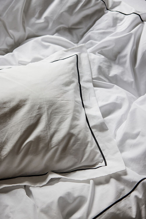 Låt hotellkänslan flytta hem. Carl påslakan och örngott är krispigt sköna. Carl är tillverkad i mjuk, 100% ekologisk bomull och bidrar definitivt till en god natts sömn. Designen är stilren och klassisk med en vit bas som pryds av svarta stygn, en sorts brodyr som kallas ”baratta”. Ett bäddset som håller i evighet, som är lika uppskattat att få som att ge bort. Säljs i set med påslakan och örngott. Trådtäthet 144.