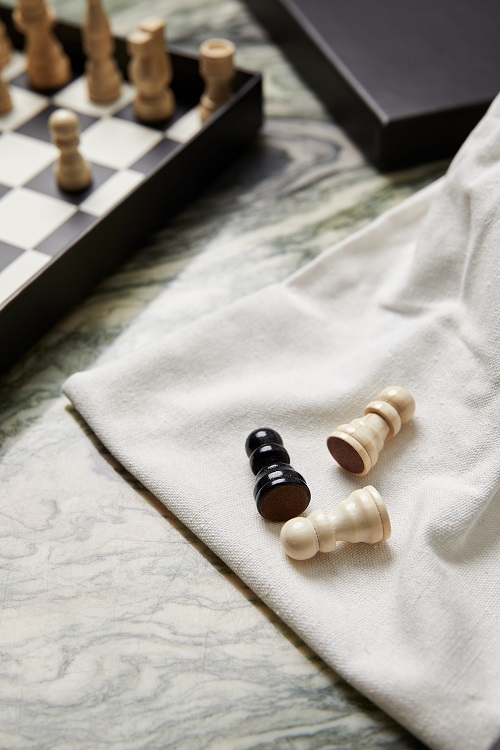 Klassiskt schackspel i svart och vitt. Pjäserna är lackerade i trä. Spelet kommer i en fin förvaringslåda som den i sig blir en fin inredningsdetalj i hemmet.