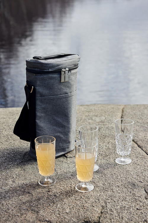 En smart lite högre kylväska. Passar tex till två vinflaskor eller 1,5 liter PET flaskor. Utrustad både med bärhandtag och justerbar axelrem.