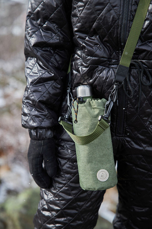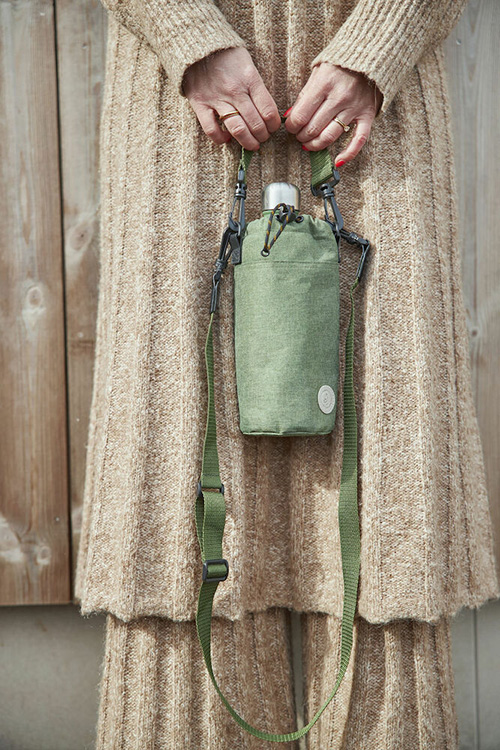 Den lilla kylväskan tillverkad i rPET, återvunna PET-flaskor. Perfekt att hänga över axeln för den lilla picknicken eller äventyret i parken. Rymmer en 50 cl vattenflaska eller några burkar läsk. Väskan har en vacker skogsgrön färg, axelbandet är reglerbart och den stängs med en dragsko.