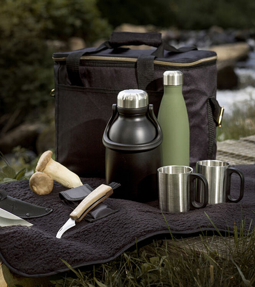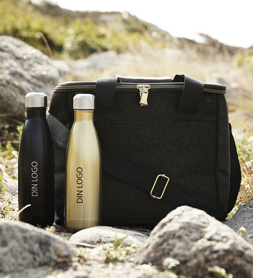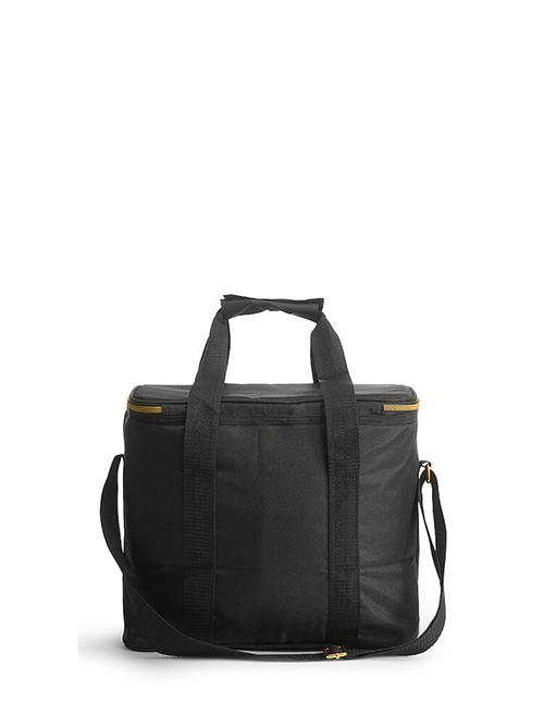 Rymlig och stilren kylväska i svart med läckra detaljer i guld. Praktiskt med både bärhandtag och justerbart axelband. Rymmer 20 liter.