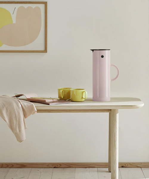 Termoskannan EM77 designad av Erik Magnussen och producerad i Danmark sedan 1977 är en designikon som är känd och älskad över hela världen med sitt unika vipplock. Enliterskannan kan användas till kaffe och te och den isolerande glasinsatsen ser till att drycken håller sig varm i många timmar - eller kall om kannan används till exempelvis iste. Utöver vipplocket medföljer det även ett picknickskruvlock så att kannan lätt kan transporteras med sitt innehåll. EM77-kannan är designad för att hålla hela livet eftersom alla delar kan bytas ut