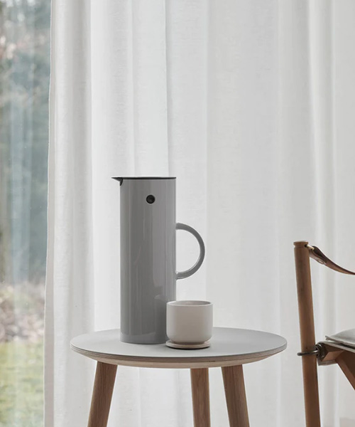 Termoskannan EM77 designad av Erik Magnussen och producerad i Danmark sedan 1977 är en designikon som är känd och älskad över hela världen med sitt unika vipplock. Enliterskannan kan användas till kaffe och te och den isolerande glasinsatsen ser till att drycken håller sig varm i många timmar - eller kall om kannan används till exempelvis iste. Utöver vipplocket medföljer det även ett picknickskruvlock så att kannan lätt kan transporteras med sitt innehåll. EM77-kannan är designad för att hålla hela livet eftersom alla delar kan bytas ut