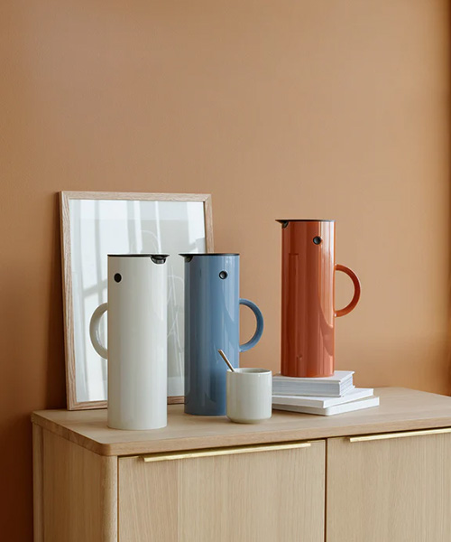 Termoskannan EM77 designad av Erik Magnussen och producerad i Danmark sedan 1977 är en designikon som är känd och älskad över hela världen med sitt unika vipplock. Enliterskannan kan användas till kaffe och te och den isolerande glasinsatsen ser till att drycken håller sig varm i många timmar - eller kall om kannan används till exempelvis iste. Utöver vipplocket medföljer det även ett picknickskruvlock så att kannan lätt kan transporteras med sitt innehåll. EM77-kannan är designad för att hålla hela livet eftersom alla delar kan bytas ut
