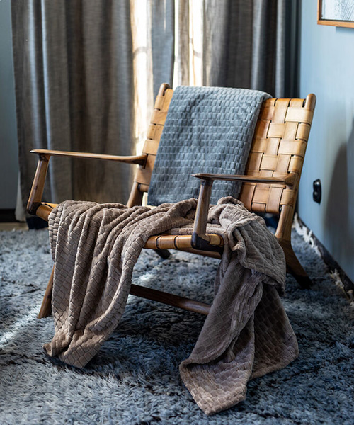 Underbara jaquardpläden från Kosta LInnewäfveri är tillverkad i mjuk fleece. Plädens framsida har ett mönster av små rektanglar medan baksidan är slät. Pläden är lika mjuk och mysig som den är dekorativ och passar både att svepa om sig som att förhöja inredningen.