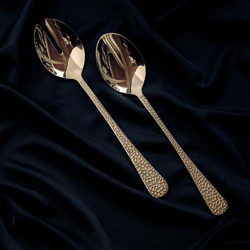 Salladsbestick i hamrat, rostfritt och polerat stål av typen 18/10.