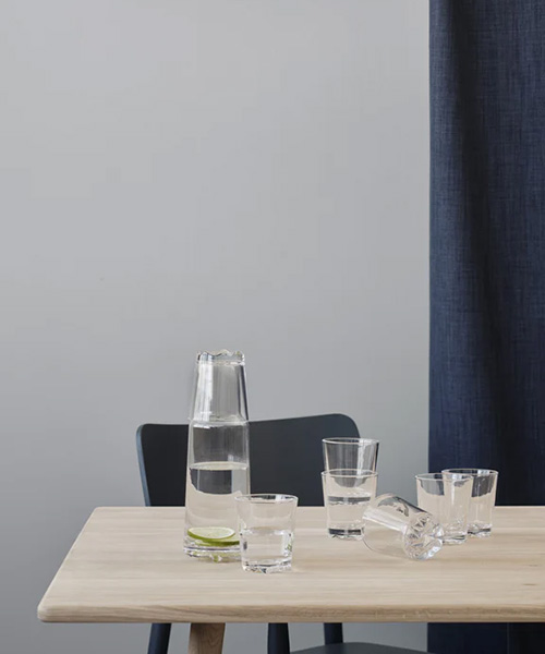 Glacier serien som består av ett 6-pack dricksglasen samt en karaff med tillhörande dricksglas. Formspråket är enkelt och stramt, men bryts av bottens sofistikerade struktur med referens till skandinaviska vintrar som kännetecknas av frost och klara iskristaller. Glasen är koniska i formen så att de kan staplas och därmed ta upp mindre plats i skåpet eller lådan.