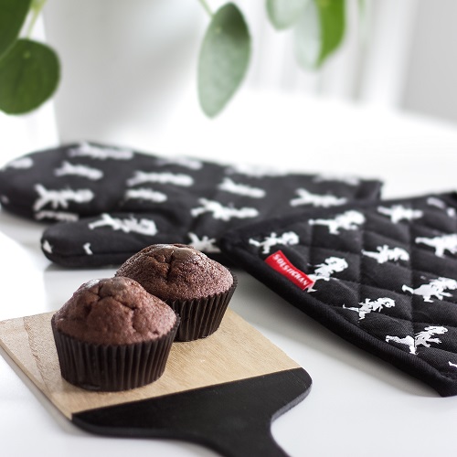 Ett paket innehållandes ett rejält grytunderlägg i gjutjärn samt grytvante.