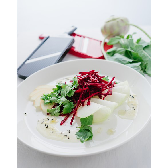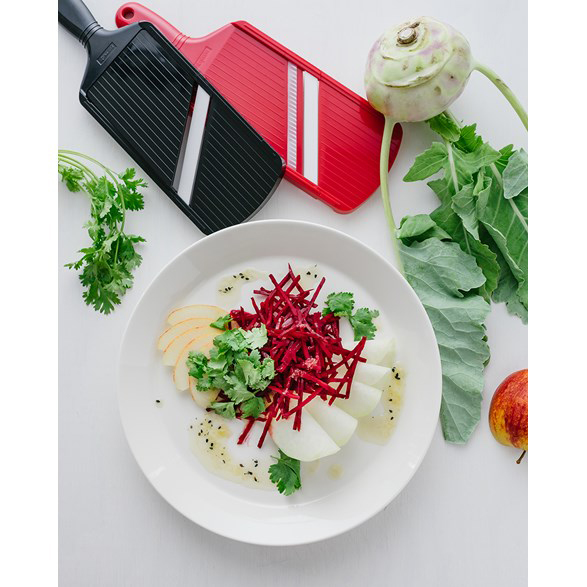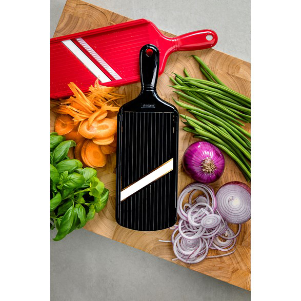 Prisbelönad mandolin som blivit bäst i test i både Icakuriren, Allt om mat och Aftonbladet. Enkel att använda – ställ bara in önskad tjocklek från 0,5 mm till 3 mm. Skivar lök och alla andra grönsaker och rotfrukter.
