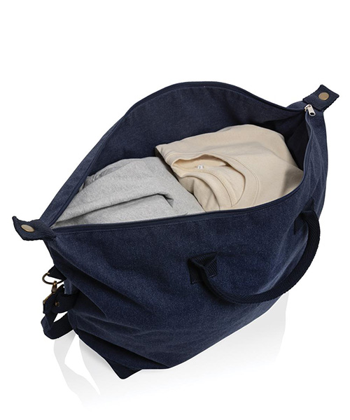 Den här lyxiga weekendväskan är inte bara snygg utan även ett low impact-alternativ tillverkat av 500 gsm återvunnen bomullscanvas. Med fina detaljer i mässing och ett rymligt huvudfack. Perfekt för dem som letar efter en högkvalitativ resväska med låg påverkan. Med AWARE™-spårning som bevisar den genuina användningen av återvunnen bomull. 2% av intäkterna från varje såld Impact-produkt kommer att doneras till Water.org.