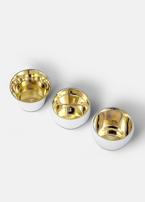 Kin är en serie om fem olika ljushållare designade av den internationellt framgångsrika designerstudion Claesson Koivisto Rune, denna modell har en utsida av Pastelrosa pulverlack, insidan är i blankpolarad mässing. Formgiven år 2010.