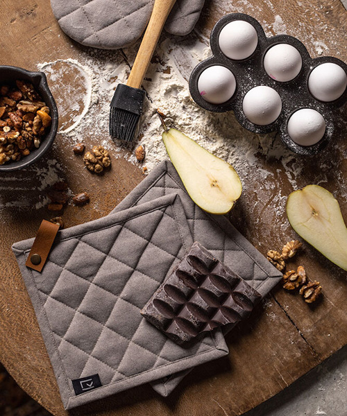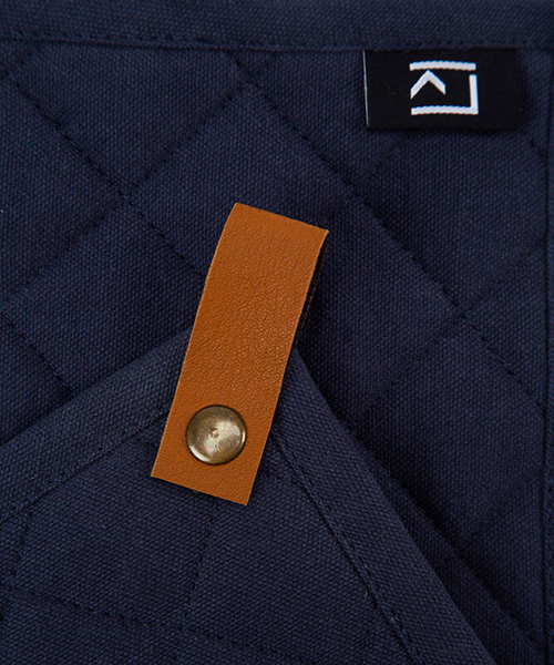 Grytlappar i 2-pack med ögla, producerad i ren bomull. Grytlapparna är quiltade, vadderade och har en snygg detalj i PU-läder.