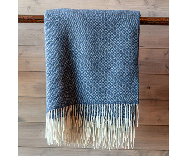 En underbar ullpläd av italienska garner att svepa om sig en ruggig höstdag. Materialblandningen gör den mjuk, lätt och ändå värmande. Kommer i det klassiska mönstret "gåsöga", ett mönster som står sig genom tiden.