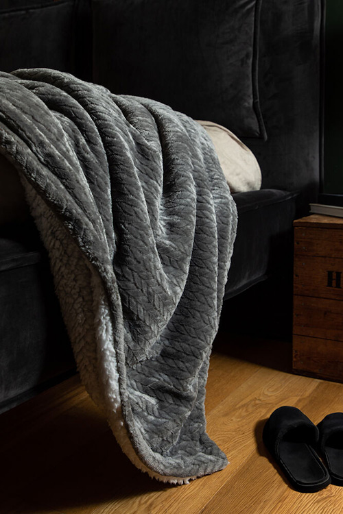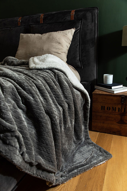 Upplev mjukheten i denna flätade sherpapläd med enfärgad ovansida och vit undersida. Med sitt mysiga och varma material är den perfekt för kalla kvällar framför tv:n eller som en extra mjuk sängfilt. Skäm bort dig själv eller ge bort som en omtänksam gåva.