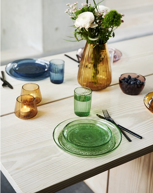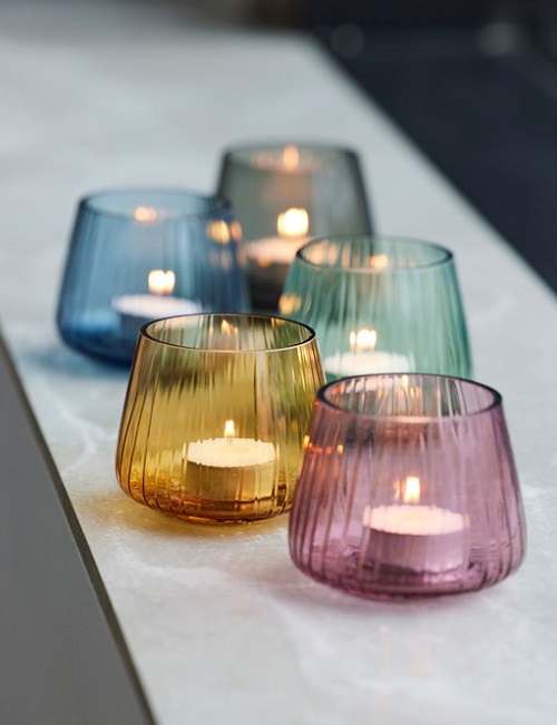 Värmeljushållarna finns i färgerna grönt, amber, rosa, blått och smoke.