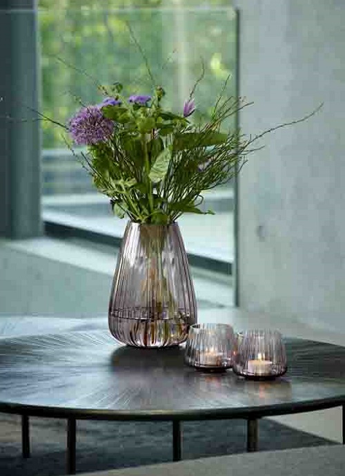 Den vackra vasen i genomfärgat glas har samma fina räfflade look som vattenglasen i Kusintha-serien