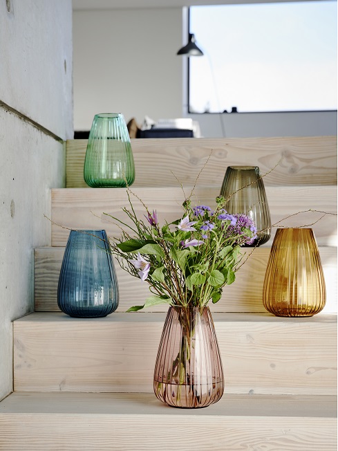 Vasen finns i grönt, amber, pink, blå och smoke.