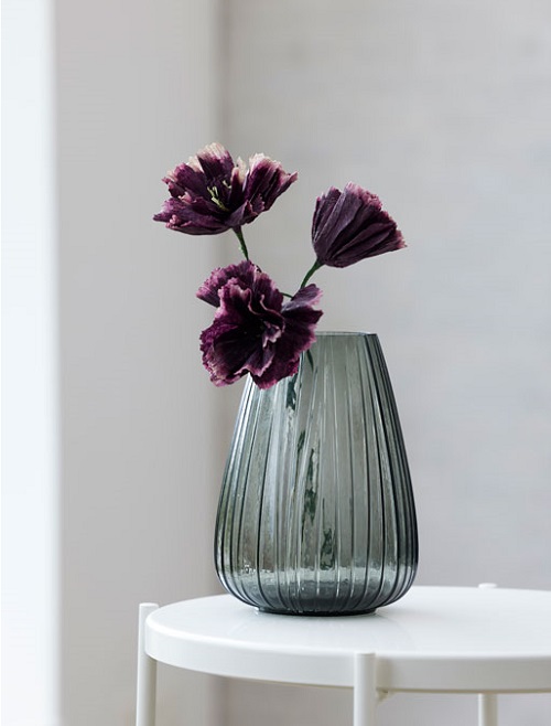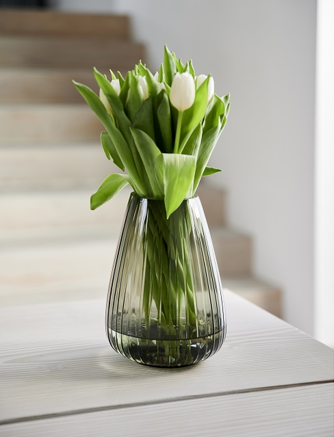 Den vackra vasen i genomfärgat glas har samma fina räfflade look som vattenglasen i Kusintha-serien