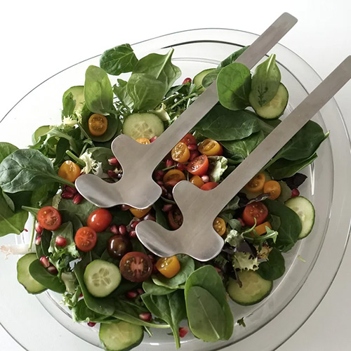 Salladsbesticket LEAF är tillverkat av rostfritt stål och är en riktigt snygg detalj på middagsbordet. Den lätt rundade designen gör att man enkelt får upp precis rätt mängd sallad. Leaf har precis blivit belönad med German design award.
