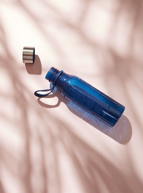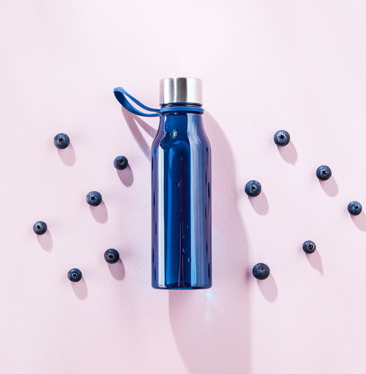 Vattenflaska i BPA-fri tritanplast. Öglan på locket gör den enkel att hänga på väskan samt att den nätta formen gör att den passar i de flesta mugghållare. Flaskan är enkel att rengöra både för hand och i maskin. Passar bra att lägga ett tryck på.