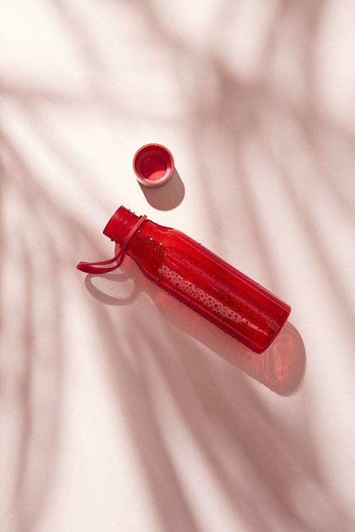 Vattenflaska i BPA-fri tritanplast. Öglan på locket gör den enkel att hänga på väskan samt att den nätta formen gör att den passar i de flesta mugghållare. Flaskan är enkel att rengöra både för hand och i maskin. Passar bra att lägga ett tryck på.