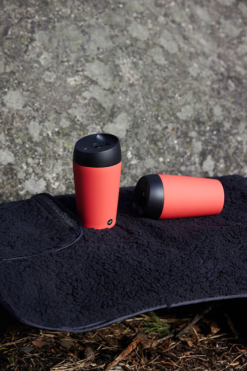 Loke, en resemugg som vi båda älskar för sin variation, färgval och konstruktion. Vår röda loke är producerad med gummerad yta som ger ett extra bra grepp. Loke är en serie produkter vars syfte är att förenkla vardagen. Loke rymmer 24 cl och kan enkelt placeras under kaffemaskinen för påfyllning. Muggen har dubbla väggar för att hålla drycken varm längre. Men det bästa av allt är att det inte finns något läckage tack vare en smart låsfunktion.