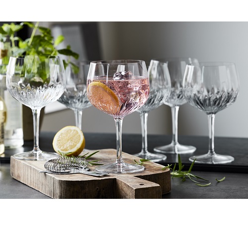 Bra och rymliga glas med plats för massor av is, garnering och tonic-vatten. Glasen har en tunn och elegant stam som är förstärkt med titan. Det ultraklara kristallglaset framhäver vackert färgen och substansen i drycken.