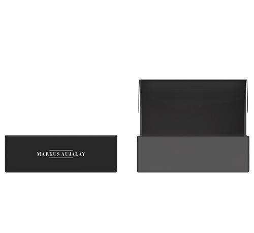 Svarta greppvänliga handtag och Markus Aujalays logo / tecken snyggt etsad / tryckt på bladet. Japanska kockkniven är 30 cm och skalkniven är 24 cm. Ligger fint förpackade i en present/färgkartong.