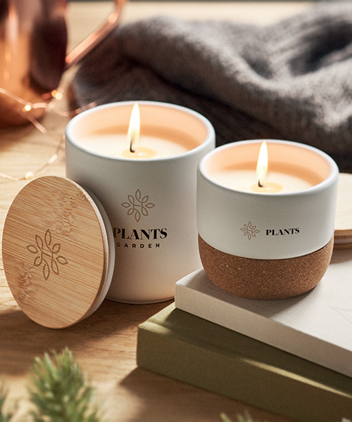 Doftande växtbaserat vaxljus i burkhållare i stengods med bambulock och korkbotten. Doft Linnen, 80 gr. Brinntid: 7,5 timmar.