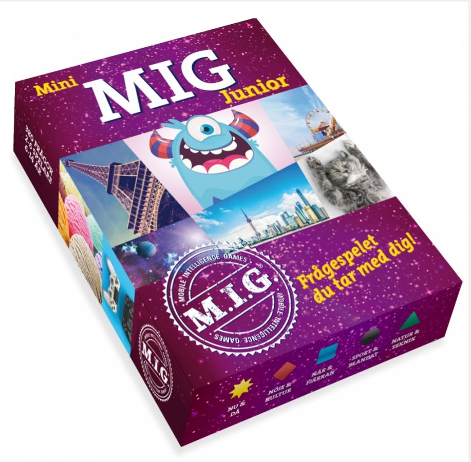 Kompletta frågespel i fickformat. Roligt, snabbt och allmänbildande. Mini MIG Grå med 380 frågor för vuxna. Mini MIG Lila med 380 frågor för juniorer mellan 6 och 14 år och Mini MIG Högskoleprovet med 380 frågor för alla som vill testa sina kunskaper i högskoleprovets tre grunder matte, svenska och engelska. Enkelt att ta med överallt!