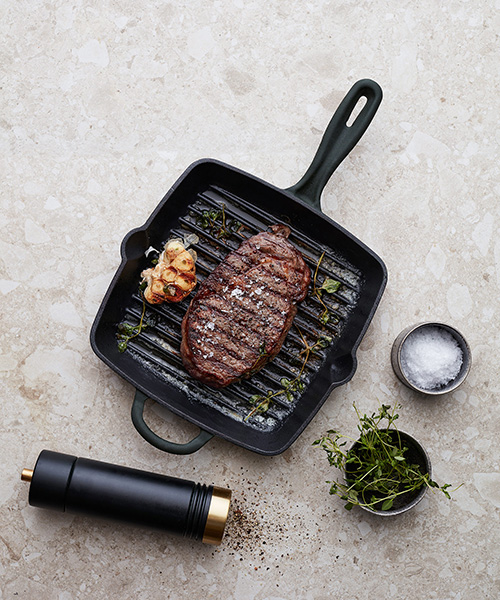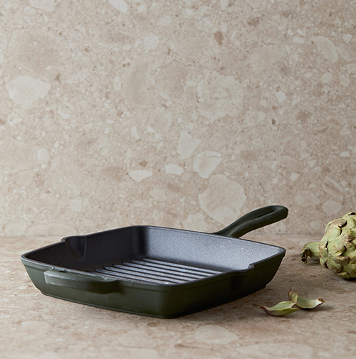 Klassisk grillpanna i emaljerat gjutjärn i Monte-serien. Ränderna i pannan höjer upp råvarorna och skapar därmed den indirekta värmen som vi känner igen från grillen. De gör även att fetter rinner av och motverkar således att maten tkokar i fett. Gjutjärnet gör att värmen fördelas jämnt över hela pannan och att den bibehåller värmen under lång tid. Materialet är väldigt tåligt och pannan går att använda på flera olika värmekällor, inklusive i ugn - perfekt om du behöver hålla middagen varm länge.