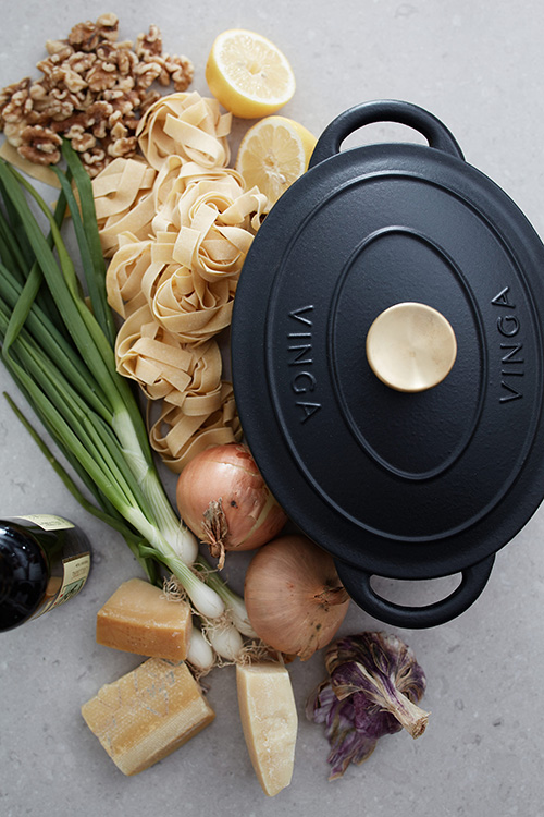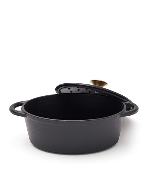 En klassisk gjutjärnsgryta i Monteserien. Tack vare gjutjärnets goda värmeegenskaper är den idealisk till grytor och långkok. Utöver det har den tjock botten, vilket gör att innehållet inte bränner fast lika lätt. Locket är försett med små piggar som gör att vattenångan som kondenseras fördelas jämnt och fint över innehållet – en självösningsfunktion. Insidan har en svart emaljering med större porer som har en något ruffare yta. Detta gör att porerna över tid fylls med olja och utvecklar en nonstick patina på samma vis som rågjutjärn. Fungerar på alla typer av spishällar inklusive induktionshäll.