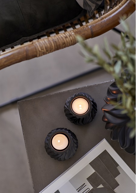 Värmeljusstake Flame svart 2 st Morsø