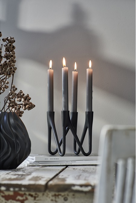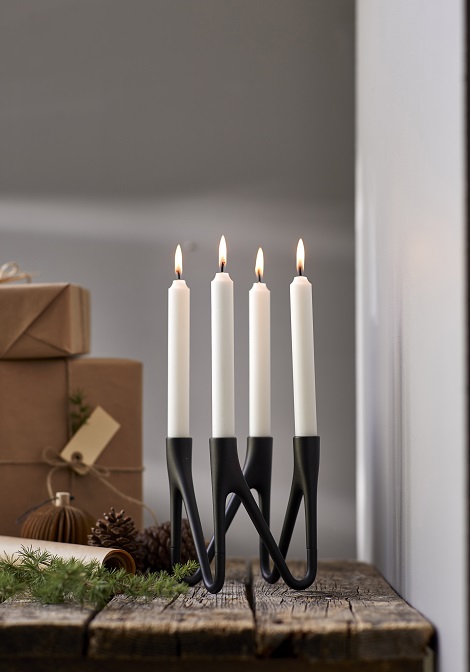 Morsö Roots ljusstake kan kombineras till det antal ljus du önskar. Den flexbila konstruktionen gör att det är enkelt att bygga en personlig ljusstake som passar för alla tillfällen och i alla hem. Du kan sätta samman den med 3, 4, 5, 6 eller fler ljus. Med fyra armar är ljusstaken 16 cm hög och 13,5 cm i diameter.