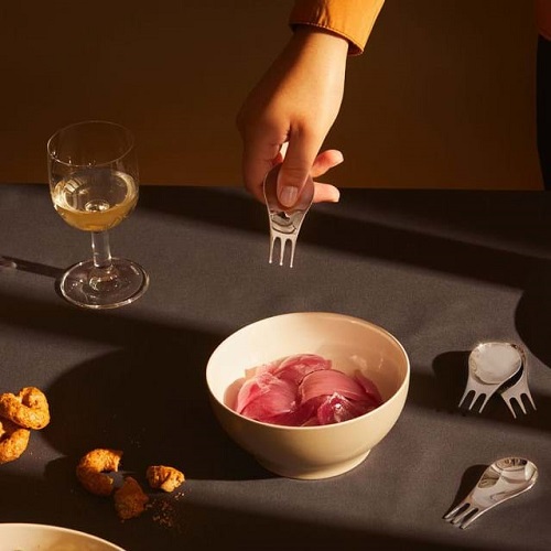 Kompakt och praktisk är Moscardino designad för att svara på de föränderliga vanorna att äta och ta emot: för att snabbt äta en måltid, för en stående lunch, för en informell aperitif eller för att servera smårätter och plockmat på ett nytt och originellt sätt.