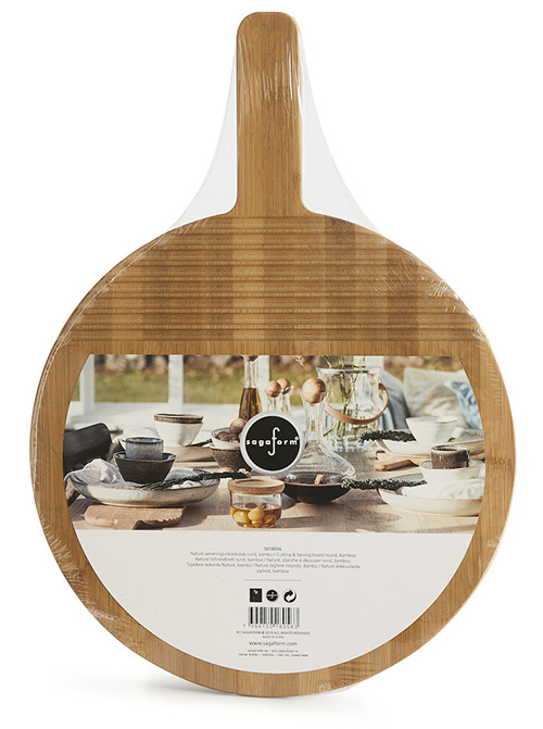 Skippa plasten och gör ett hållbart val med en skärbräda i bambu. Bambu är en snabbväxande och förnybar resurs med många fördelar. Materialet är starkt och naturligt antibakteriellt. Dessutom kräver odlingen lite vatten och sker utan bekämpningsmedel och konstgödsel. Denna runda skärbräda i bambu är formgiven av Anton Björsing. Brädan har ett gediget handtag för servering och skåror som är en kombination snygg detalj och praktisk funktion, då de ser till att verktyg inte glider av lika enkelt.