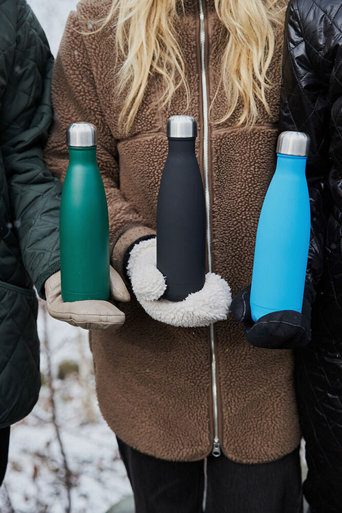 Sagaforms bästsäljande stålflaska i svart med ett vitt stänkmönster. En klassisk och hållbar flaska med modern design. Stålflaskan har unika egenskaper. Den håller kylan i upp till 24 timmar, och värme i 12 timmar. Rymmer 50 cl.